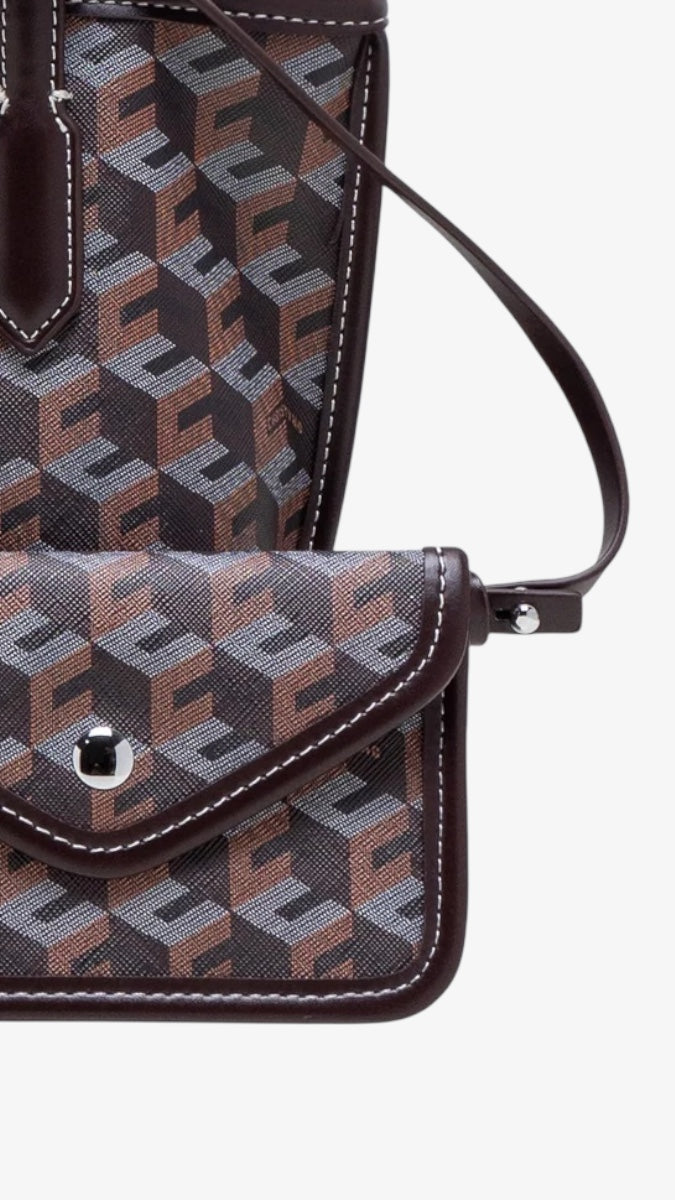 Christy Ng's Russo Mini Tote Bag is an essential part of any well-curated wardrobe. This is a sized-down version of the popular Russo Monogram Series that features the brand new cuboidal monogram of the brand's C.N. initials. Suited for when you have a little less to carry than usual, this tote bag is made from lightweight coated canvas and is sized to fit your wallet, phone, bottle and more. Use the detachable pouch to secure your smaller essentials. This semi structured tote is trimmed with vegan leather top handles that are long enough to sling over your shoulder.