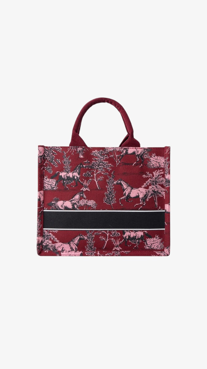 Christy Ng’s Toile Horse Tote is a celebratory homage to the Year of the Horse, reimagining traditional Chinese New Year motifs through a sophisticated Toile De Jouy lens. Detailed with intricate illustrations of galloping horses amidst a serene landscape, this limited piece is rendered in natural canvas colour or rich plum hue that feels both festive and timeless.
