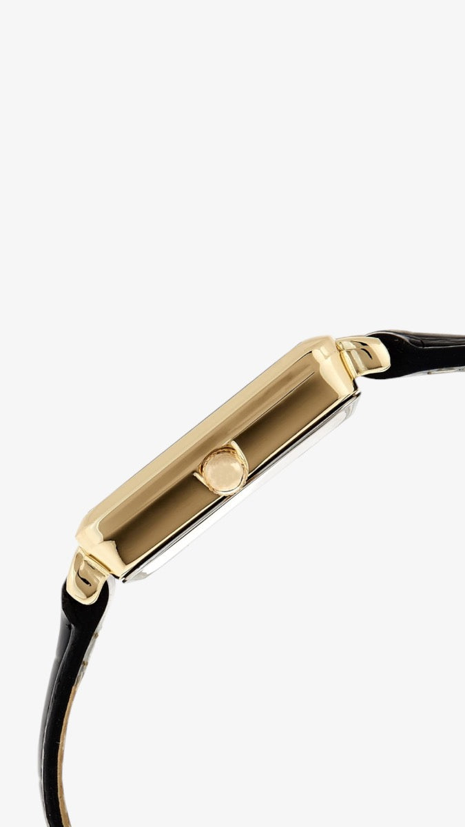 Black croco-grain faux leather strap with buckle closure